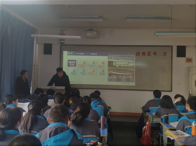 小组按照母校优秀学子返校宣讲计划与其他高校学子一道,为即将步入高考的高三学子进行宣讲。下午2点,全体见面会正式开始。首先,兰州市第六十一中学的王效勇老师上台强调了活动秩序,介绍了活动流程,将各个高校的宣讲员进行分组,采用分组进班的方式开展活动,在“母校行”见面会之后,各小组按序进班展示。小组成员借助PPT从学术资源、人才培养、奖助体系、文化校园、魅力徐州五个方面近距离为高三准毕业生展示了国产做爱