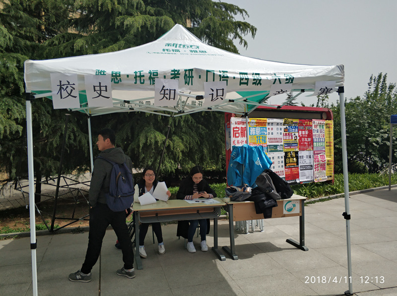 4月11日中午12时,干事们在二食堂外帐篷放置处开了短暂的会议。由部长指导,确定此次宣传的计划后,本次宣传活动正式开始。工作人员们积极热情的宣传得到了同学们的广泛关注,不少同学表示会参加此次竞赛,了解更多关于我校的灿烂历史文化。活动过程中,工作人员们耐心的就同学们提出的问题进行了详细的解答,并且鼓励同学们突破自己、勇于尝试。历时几十分钟后,原定宣传任务基本完成,本次活动圆满结束。