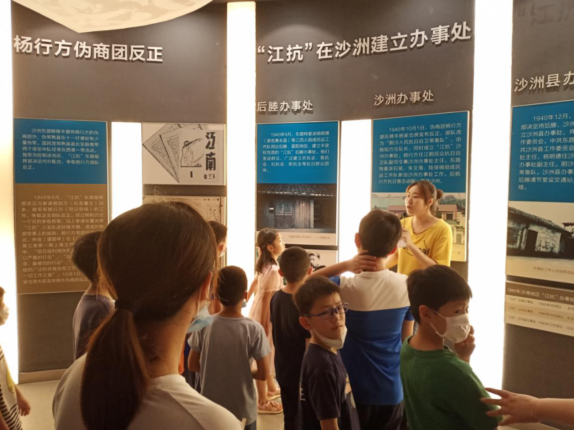 在纪念馆解说员的讲解与带领下,实践团队依次参观了纪念馆中华怒吼、国耻家恨、“江抗”东进、众志成城、浴血奋战、百折不挠、沙洲光复、名录等8个主题的展馆,充分了解并学习了中国共产党领导下的沙洲儿女,在抗日战争时期为保卫家园和祖国领土完整,顽强抵御日本侵略者的英勇事迹。
