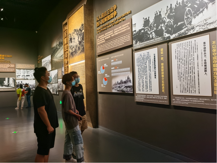 实践过程中,实践团参观了淮海战役纪念馆新馆。进入馆中,队员们被馆中肃穆庄严的氛围所感染,“人民的胜利”五个大字和金色的淮海战役壁画让队员们深受震撼。循着方向前进,队员们以淮海战役时间线为线索,游览了淮海战役期间的纸、布、铁、皮等质地的文物。在参观藏品的过程中,队员们认真阅读了展品旁呈列的文字,逐一听取了广播的介绍,硝烟弥漫,战火纷飞的战场如临其境,实践团成员深刻体会到了淮海战役革命岁月的艰苦。