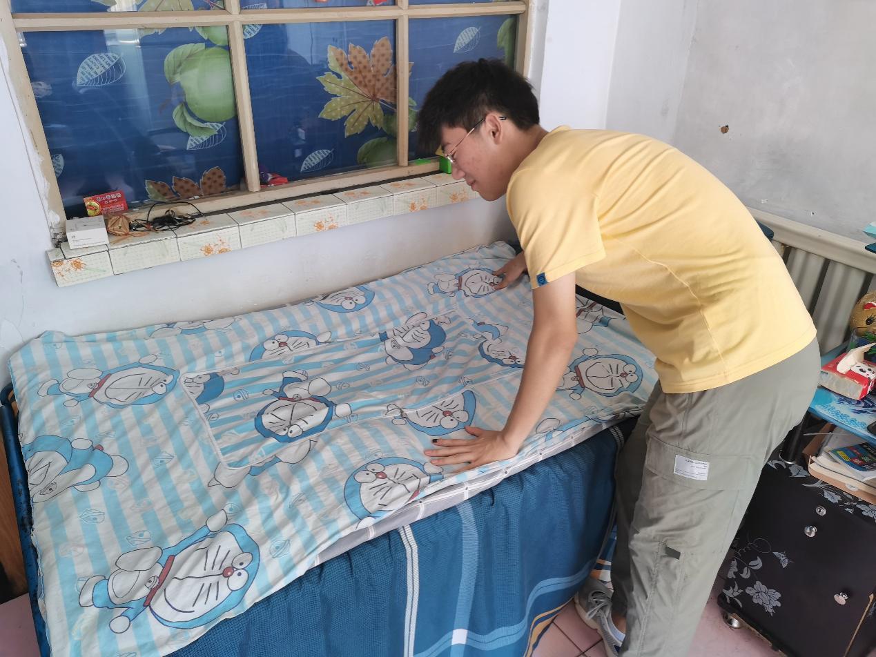 实践团队成员为老人整理床铺