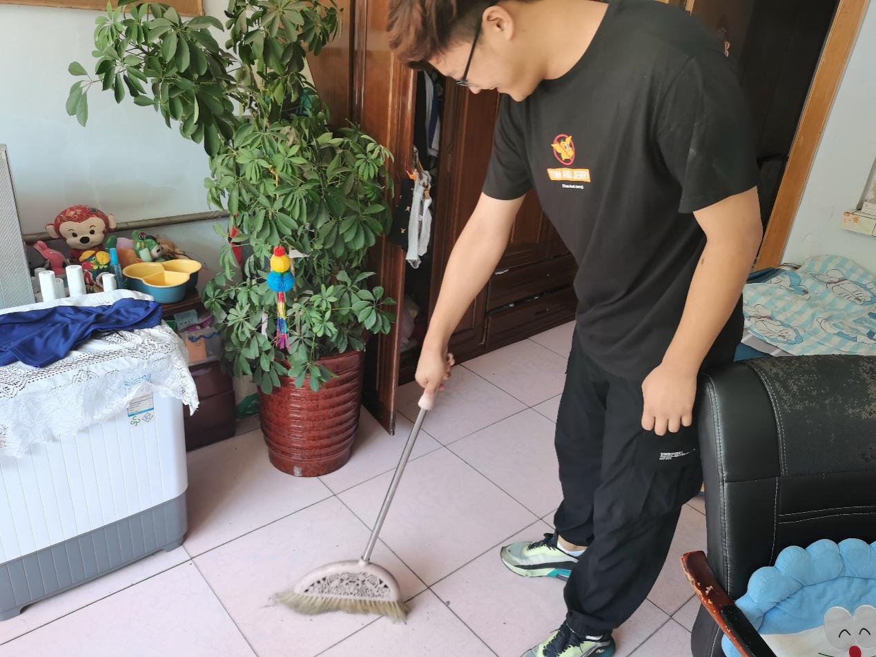 实践团队成员为老人家里打扫卫生