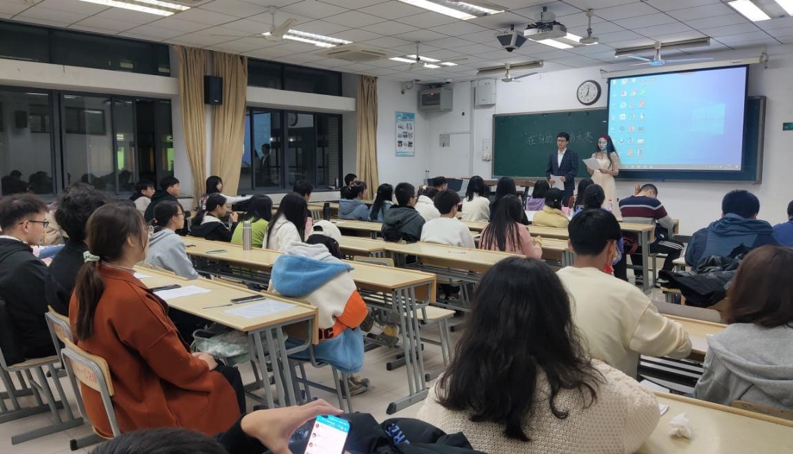 主持人简单介绍比赛规则和流程后,比赛正式开始。来自各个学院的选手依次上台,对自己喜欢的电影和电视片段进行了配音。同学们选择的配音题材十分丰富,既有外国知名电影《哈利波特》、电视剧《生活大爆炸》,也有迪士尼电影《无敌破坏王》和《冰雪奇缘》,还有日本动漫《龙猫》,美国动漫《海绵宝宝》和国内连续剧《觉醒年代》等。比赛期间,同学们发挥稳定,表演时情绪把控得当,完美地抓住了人物特点。表演结束后,评委们根据配音难度,普通话标准水平进行打分。在经过长达一个小时的精彩角逐后,有12组队伍成功进入了决赛。