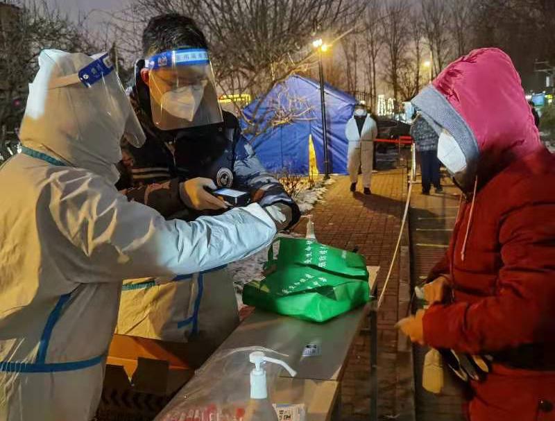 学子赵寄童于北京市大兴区清源街道参与了以社区大规模核酸检测为目的的社会实践活动。