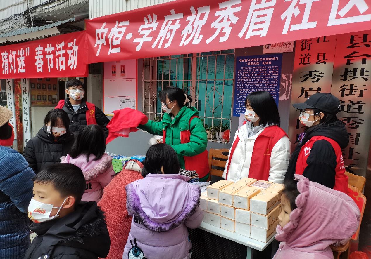 在秀眉社区,张洋榕与多名大学生志愿者一同组织“小桔灯亲子阅读活动”,引导和带领社区儿童完成绘画阅读和游戏活动,锻炼了小朋友动脑、动手的能力。新春来临之时,张洋榕同学充分发挥专业优势,统筹策划了“猜灯谜,迎新春”活动,并负责此次活动的筹备、安排等工作,主要包括猜灯谜赢礼品、老党员写对联等特色活动。随后,在孟郊安置小区,张洋榕和其他同学一同问候了孤寡老人并帮助他们贴对联,让他们感受到了春节的气氛与温暖。