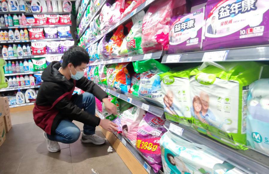 活动前期,唐琮淏同学接受了超市带班组长的岗前培训,了解并掌握了销售的基本知识和工作区域。活动期间,唐琮淏在超市入口处准备好防疫物资,为进入超市的顾客测量体温并提醒他们配戴好口罩。随着春节期间社区居民购物需求量增加,部分商品出现供不应求现象,唐琮淏同超市同事一起搬运、清点和整理超市商品,将超市的短缺商品及时摆放至货架,保障了社区居民的物资需求。