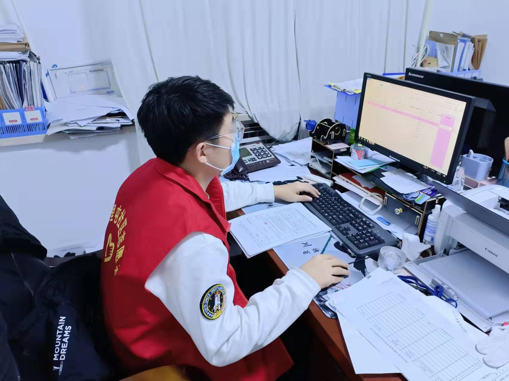 活动前期,王弘政同学接受了社区工作人员的培训。活动期间,王弘政主要负责录入退休职工取暖补贴相关信息,统计社区内第三针疫苗接种情况。在工作中,王弘政需要给填报信息不完整的职工们打电话完善资料,以确保接下来的工作不出纰漏。同时,王弘政还向社区居民说明了疫情期间做好防护的重要性和必要性,他们也都表示会做好个人防护工作、共同抗疫。