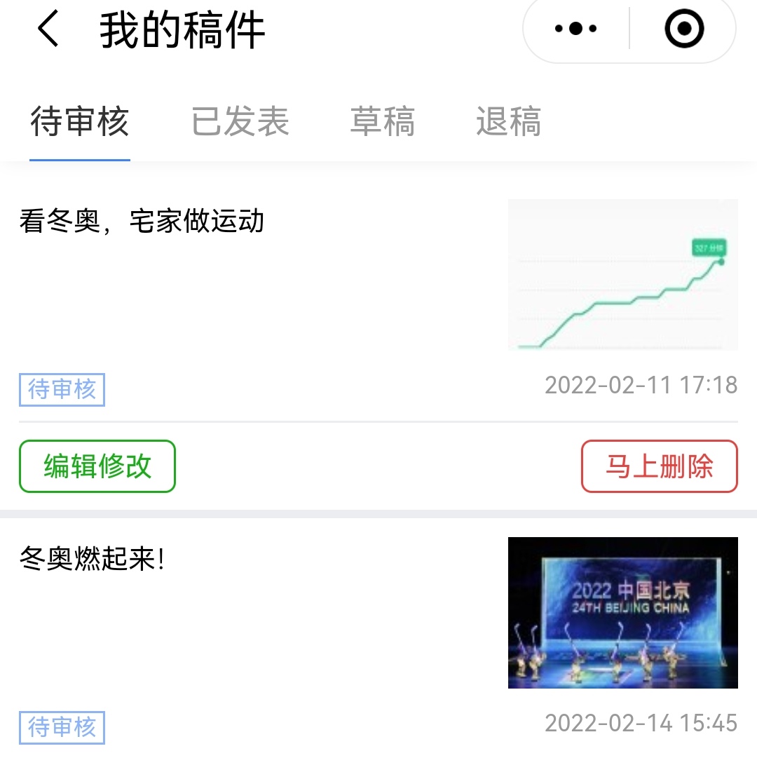 2月4日晚,开幕式成功举办,王生璞记录下了这一刻的感受。此后的几天,她又相继记录了中国的夺金时刻以及难忘的瞬间,并时刻关注有关冬奥会的热搜、新闻。与此同时,她积极行动起来,在看冬奥的同时坚持锻炼,在运动软件上坚持打卡健身,提升自己的身体素质,并将自己的感受记录下来,进行投稿。