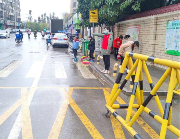 早上8:00,学校相关指导老师介绍了防疫工作要求,黄扬金负责协助明德小学的老师和保卫处的安保人员开展工作,引导前来报名的学生佩戴好口罩,有序排队测量体温后进入校园。同时,黄扬金同学积极帮助安保人员指挥往来车辆,带领孩子们安全通过斑马线,避免发生交通阻塞。实践活动期间,黄扬金同学对陪同孩子前来的家长进行良性劝导,家长们也纷纷表示理解,积极配合了学校的防疫措施,并及时驶离自己的车辆,保证了交通秩序。