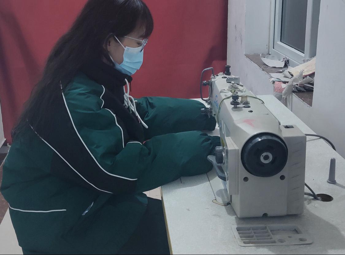 俎晓雨进行缝纫工作