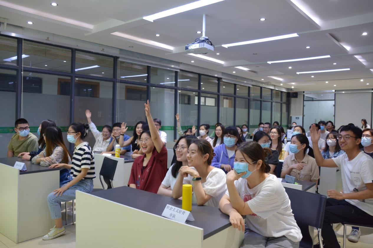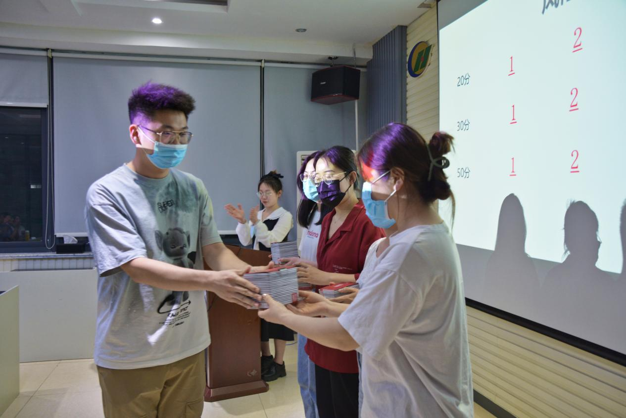 活动伊始,党站孙权帅、李含音同学首先通过图文与介绍的形式,带领大家回顾了五四运动的历史和事件背景。知识竞答活动分为四个板块,包括单选题、多选题、抢答题和挑战题四个内容。前两个环节由参赛队伍依次选题,接力进行,抢答题和挑战题环节则由参赛队伍自行决定是否竞答。本次知识竞答的比赛方式为整个活动过程增加了许多乐趣,现场气氛热烈,参赛选手踊跃竞答,场下观众认真思考,整个活动集知识性、趣味性于一体。比赛最后,“社会主义好青年队”斩获一等奖,“向前冲队”与“四小天王队”获二等奖,其余三支队伍获得三等奖,研究生党站为获奖队伍颁发了奖品并向获奖同学表示了祝贺。