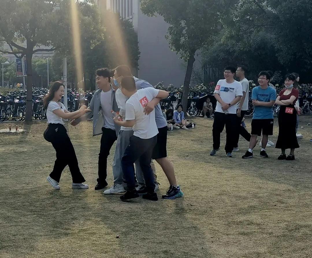 本次活动设有“心有千千结”、“蒙眼喂食”、“气球传递纸杯”、“同舟共济”和“定格瞬间”五个游戏,活动参与人员被分成不同小组,轮流进行不同游戏。各位同学在游戏中密切配合,互帮互助,拉近了彼此的距离,场上笑声四起,热闹的场面也吸引了不少同学驻足观看,他们积极地和场上同学互动 ,将现场气氛推向了高潮。