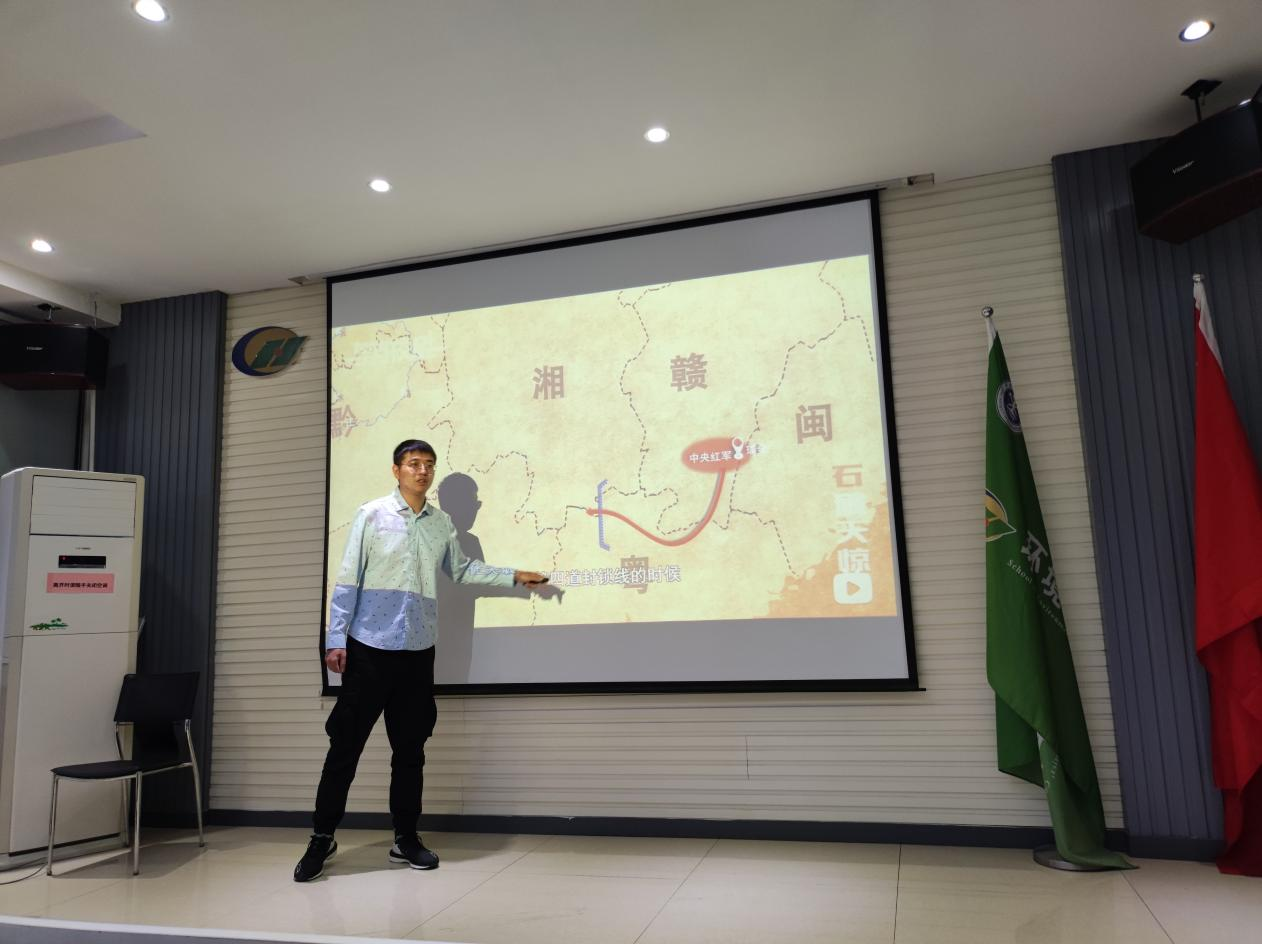 为深入学习贯彻习近平总书记在党史学习教育动员大会上的重要讲话精神,深化“不忘初心、牢记使命”主题教育成果,5月31日晚7时,由院研究生党员工作站承办的“百年峥嵘史——四渡赤水出奇兵”为主题党史学习教育专题党课学院A512会议室举办。此次专题党课由博士第一党支部的刘秉锋同学主讲。
