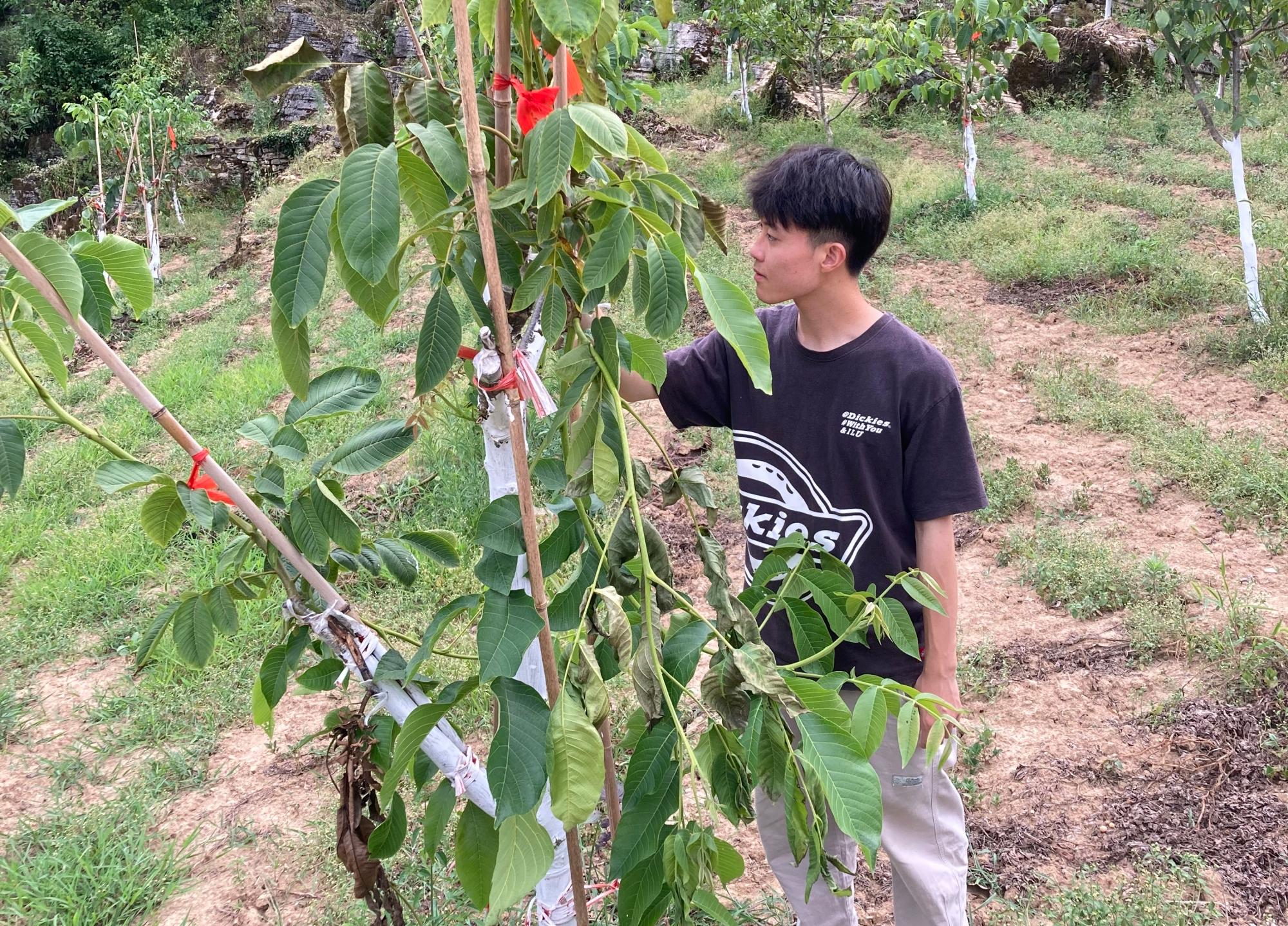 近年来,在巫山县林业局的推动帮助下,鸦鹊村建立了功正核桃种植专业合作社,全村近年来退耕还林已经发展核桃2700亩,嫁接核桃成为村脱贫攻坚希望产业。在本次暑期社会实践中,黄骏杰同学回到故乡鸦鹊村,他向鸦鹊村村支部书记了解到本村的实际种植情况,并在之后的实践中主动申请加入合作社,成为一名助农志愿者,每天跟随合作社的技术人员一起去往田间地头学习并熟练掌握了核桃树嫁接方法,熟悉了不同的地形地貌应如何选择种植密度,并和当地的种植户一起进行了核桃树的养护工作。之后,黄骏杰同学在与当地村民的交流中了解到,全村核桃已升级为“渝城1号”的良种,村民自己也掌握了核桃嫁接的核心技术。