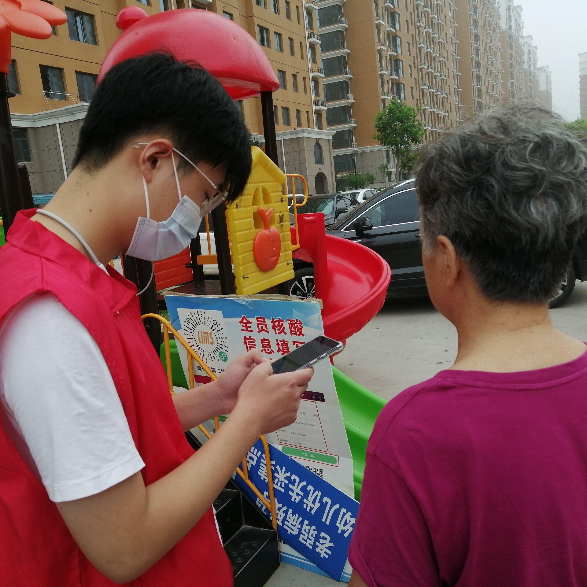 郭议泽同学,在疫情未开始时参加社会实践,被社区分配到核酸检测点,帮助社区中不会使用智能手机的老人进行扫码登记。后疫情发展,参加了社区采样登记员。