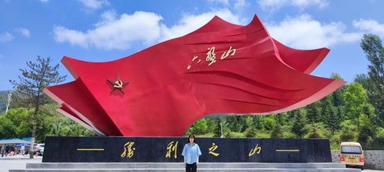 “欲知大道,必先为史”。六盘山是红军长征途中翻越的最后一座大山。7月30日中午12点,张嘉敏同学到达了六盘山脚下,不见红军背影,却也感受得到当年战争的硝烟。从六盘山下沿着蜿蜒的“红军小道”一路向上攀爬,一共经过了“突破乌江”“四渡赤水”“巧渡金沙江”等18个微缩复现的历史场景,全长2.5公里。经过了约两个小时的攀爬,随之到达的是六盘山红军长征纪念馆,跟随讲解员声情并茂的介绍,张嘉敏认真聆听着长征故事,重温红色记忆,观看着红军长征中的数百件遗物,掉落的枪支以及当时的医护工具,复现的战争画面,看当年红军这一路的战争路线。令人印象深刻的,是宁夏回族自治区的回民支队,队长马本斋率领众多回民同胞抗战一线,在战场挥洒热血,深切感受到红军长征“不到长城非好汉”的坚毅精神。到达山顶,映入眼帘的是“天高云淡,望断南飞雁”的秀美画卷,一种革命豪情油然而生,荡涤了全身的疲惫,仿佛又看到将士们欢呼雀跃,旌旗猎猎的壮丽画面。毛泽东同志在此写下了流传千古的《清平乐·六盘山》。