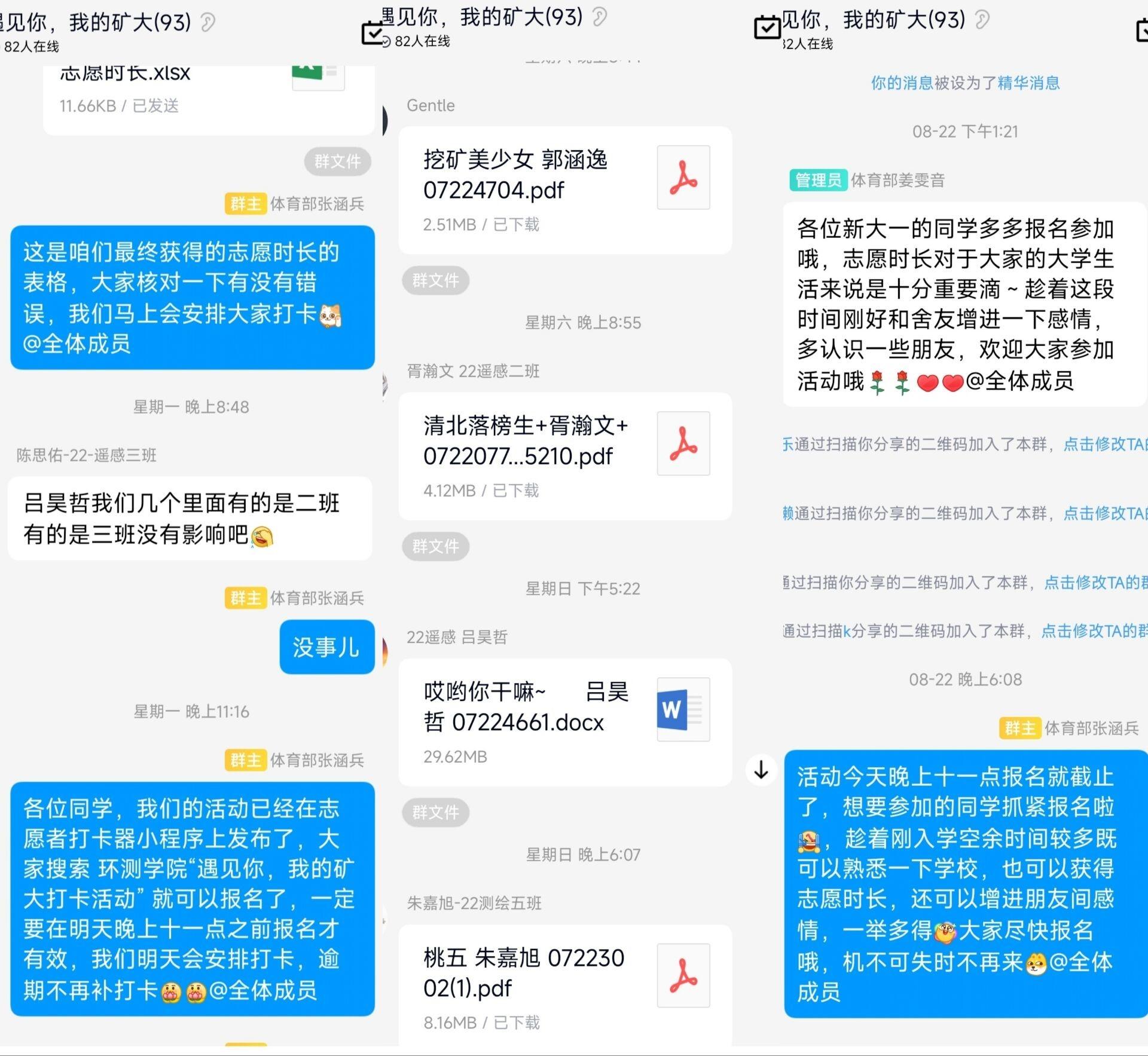 活动前期,活动负责人组织同学报名,最终共有九支队伍参与本次活动。活动期间,同学们和自己的同学、舍友一起逛校园,拍风景,留下了美好的回忆,增进了彼此之间的感情。之后,各队伍陆续按要求上传照片至相关负责人,由负责人进行核对,最终于8月29日公布了每个队伍获得的志愿时长,同时国产做爱