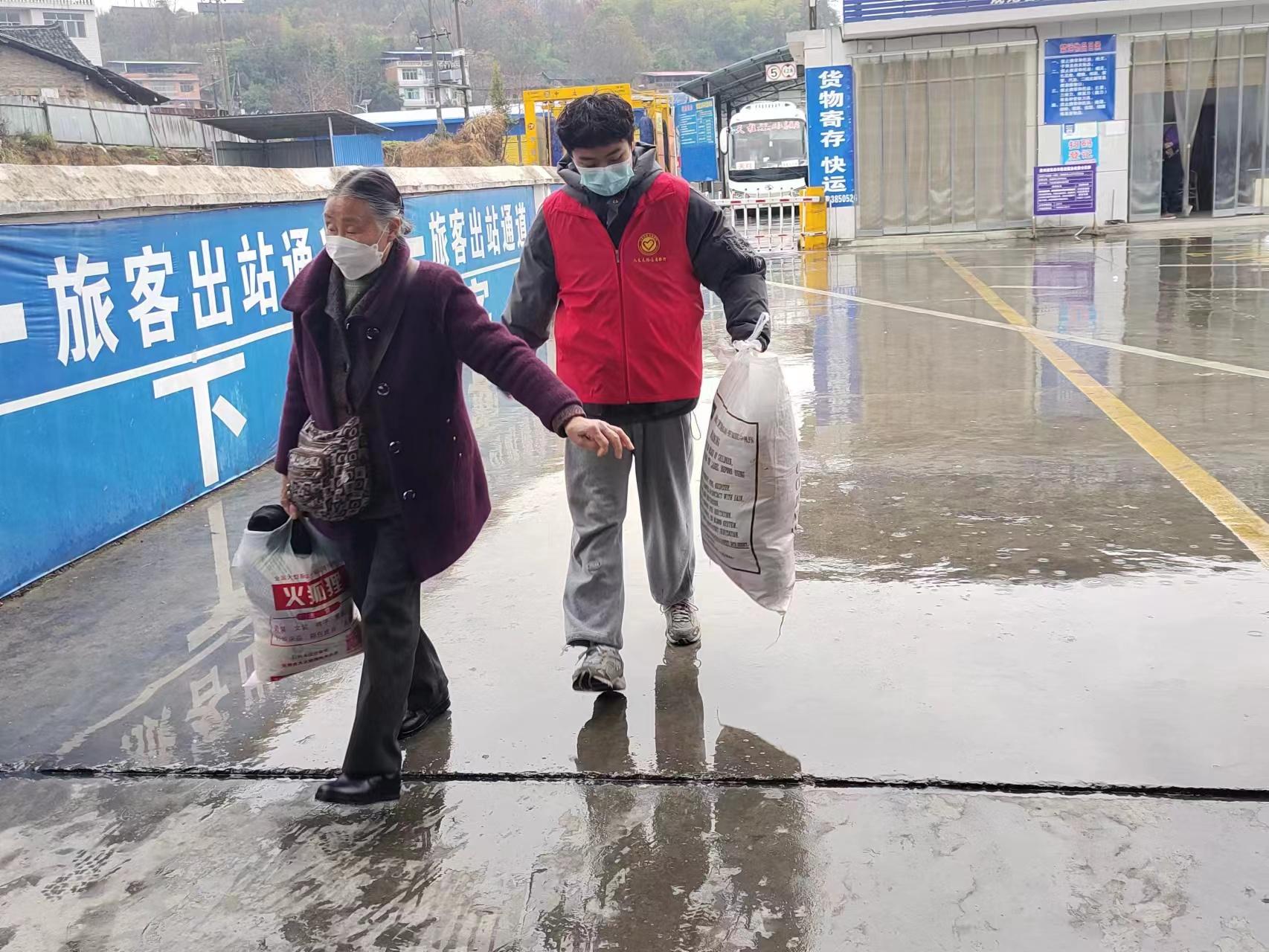 作为“乙类乙管”后迎来的第一个春运,返乡客流明显增多,青年志愿者需要早早来到车站为返乡旅客提供便民服务。活动中,志愿者们以“春运服务保障、防疫安全宣传”为主要内容,分批有序地开展志愿服务,分别在车站进出站口、售票厅、候车厅等处为旅客们提供引导咨询、秩序维护、提拿行李、应急救援等服务,同时进行防疫宣传,提醒旅客佩戴口罩等一系列有深度、有温度的志愿服务活动。罗朝龙同学作为提拿行李小组中的一员,积极地投入到工作当中去,为营造欢乐祥和、健康安全的新春佳节氛围贡献一份青春力量。