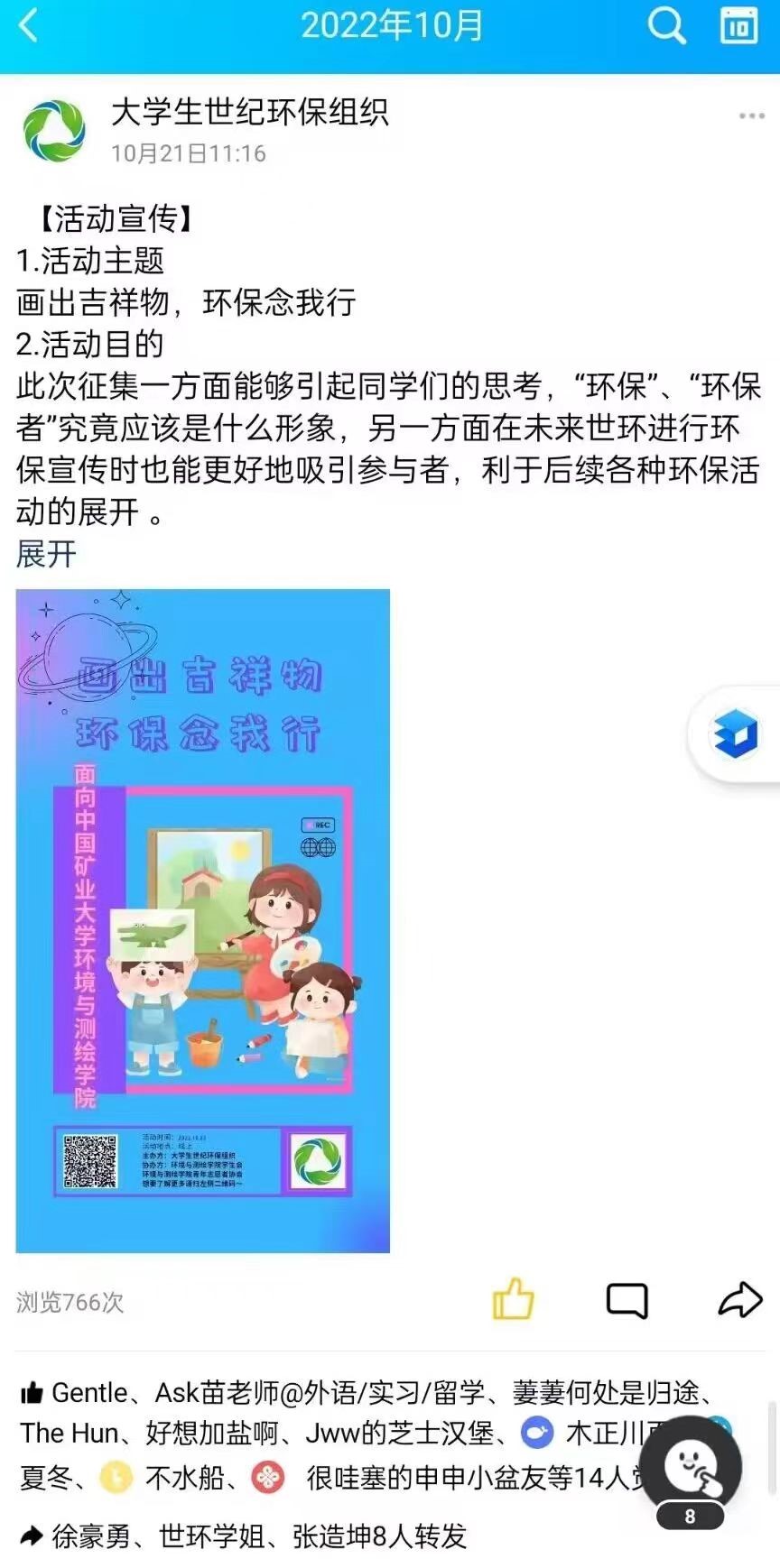 学生会联合大学生世纪环保组织、青年志愿者协会共同举办了“画出吉祥物,环保念我行”绘画征集活动,本次活动面向国产做爱