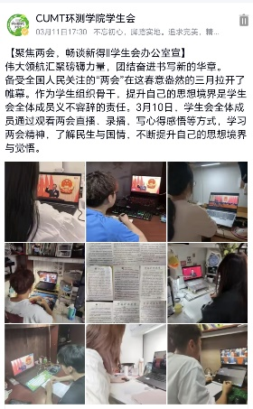 学生会办公室举办“两会精神”学习分享会。