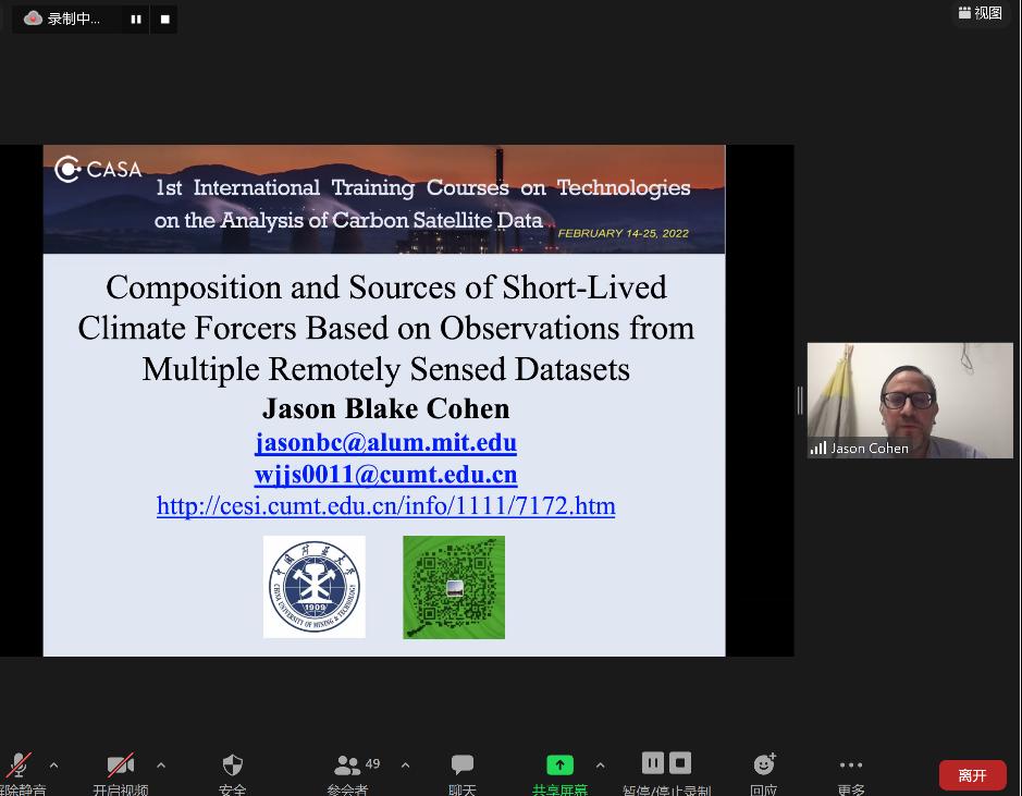 Jason Cohen和秦凯两位教师应邀分别以“Satellite composition and sources of short-lived climate forcers based on observations from multiple remotely sensed datasets”和“Atmospheric composition monitoring based on Sentinel-5P/TROPOMI satellite”为议题授课。学员们普遍认为此次培训班内容重点突出、针对性强,并对培训班的课程安排、授课质量、组织保障等方面予以充分肯定,希望能进一步加强彼此间的合作。