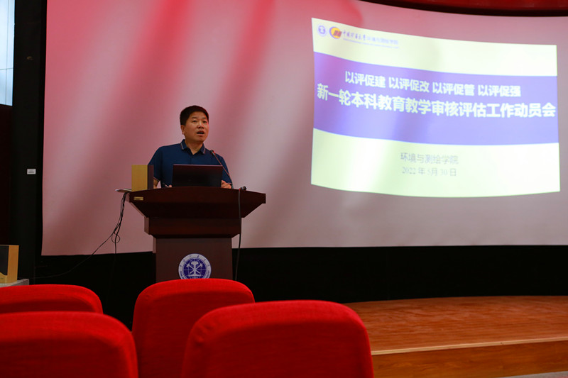 周来副院长以“以评促建 以评促改 以评促管 以评促强——全面启动新一轮本科教育教学审核评估工作”为题,从为何评、评什么、如何评三方面对新一轮评估的定位和发力点、工作组织、工作布局与任务、分类实施方案以及实施程序等做了细致的总结和汇报,分析了一流学院本科教育愿景与目标驱动,并指出了学院自查、自建、自改重点项。